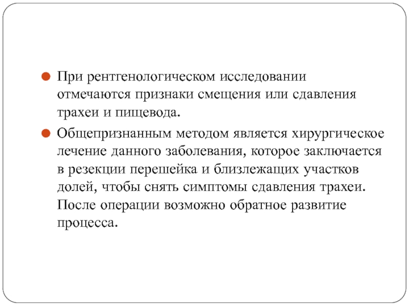 Слайд 17При рентгенологическом исследовании отмечаются признаки смещения или сдавления трахеи и