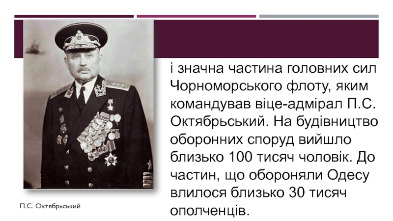 Слайд 11Оборону Одеси здійснювала Окрема Приморська армія (командуючий генерал-лейтенант Г.П. Софронов,