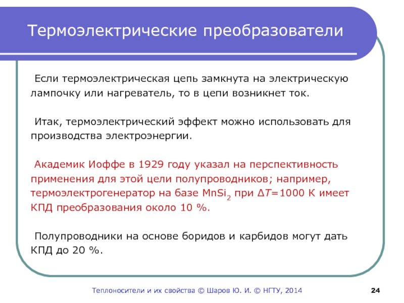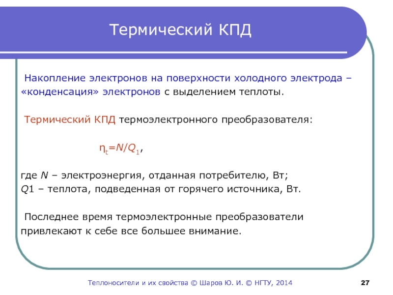 Теплоносители и их свойства © Шаров Ю. И. © НГТУ, 2014
