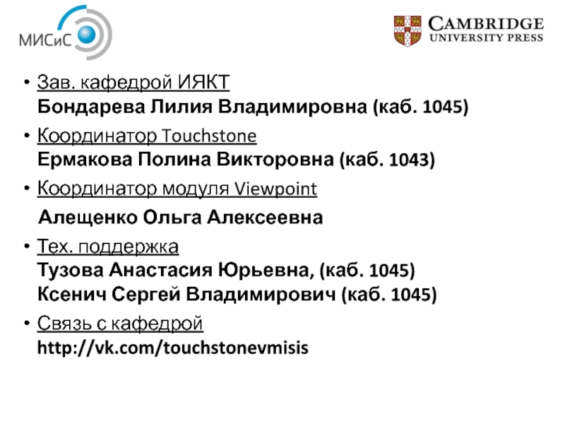 Связь с кафедрой http://vk.com/touchstonevmisis