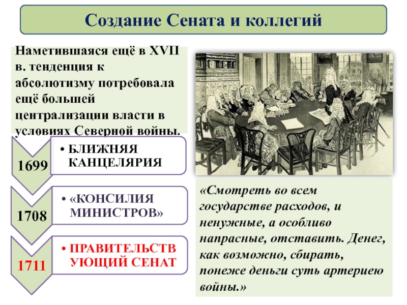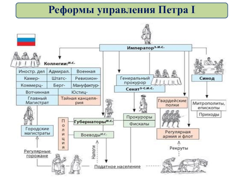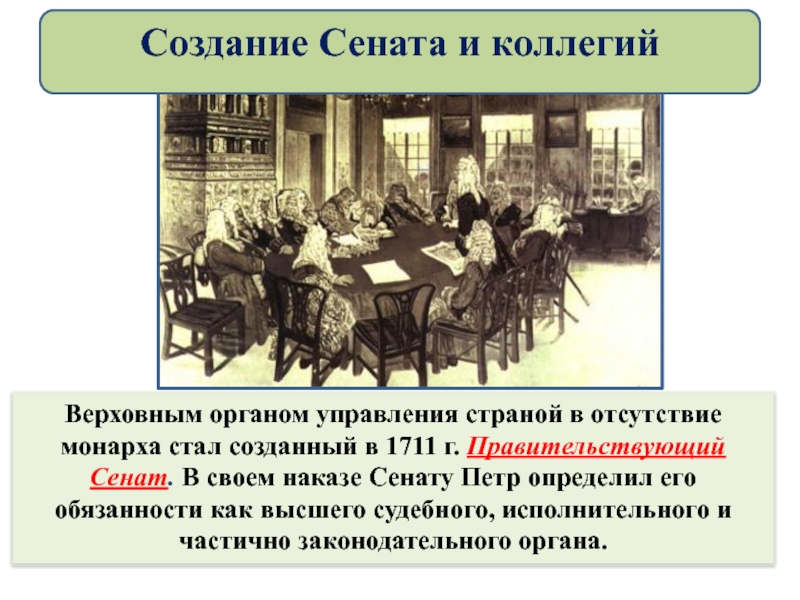 В 1721 г. Пётр подписал манифест об учреждении Святейшего Синода (под контролем обер-прокурора).