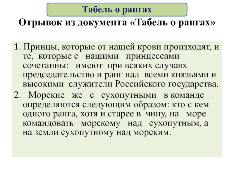 !!! Старая и новая аристократия уравнивались и в служебном положении. Давала возможность служебного роста любому служилому человеку независимо от его происхождения.