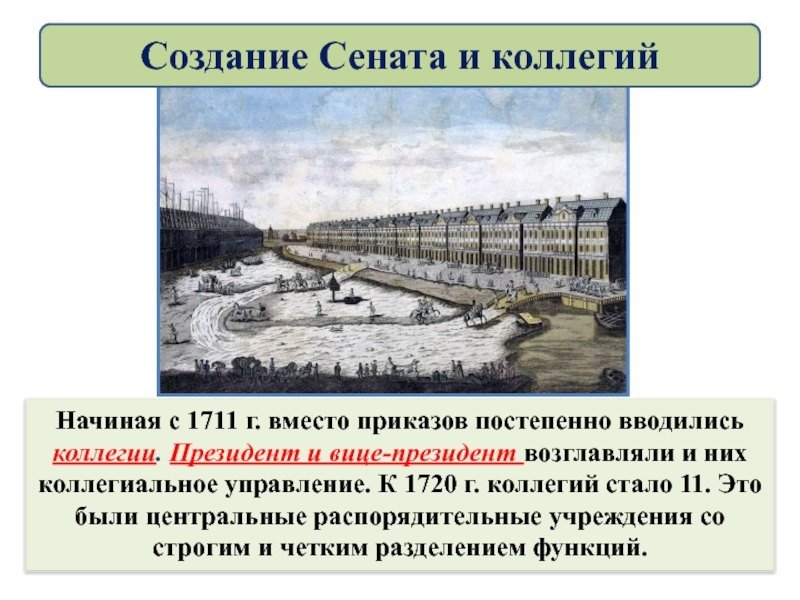 В 1721 г. был издан регламент Главного магистрата: исполнял государственные указы, контролировал сбор податей, выполнял функции суда.