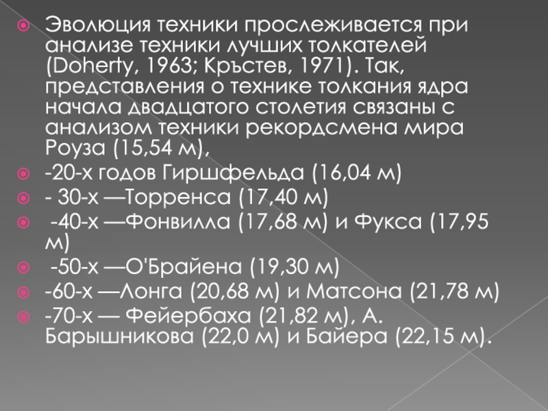 Кръстев, 1971). Так, представления о технике толкания ядра начала двадцатого
