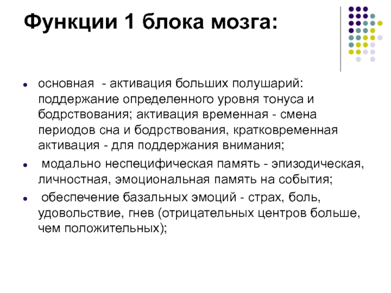 Первый блок регуляции общей и избирательной неспецифической активации мозга