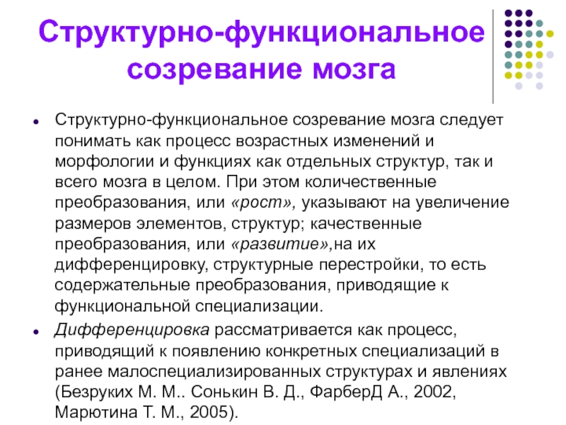 Структурно-функциональное созревание мозга следует понимать как процесс возрастных