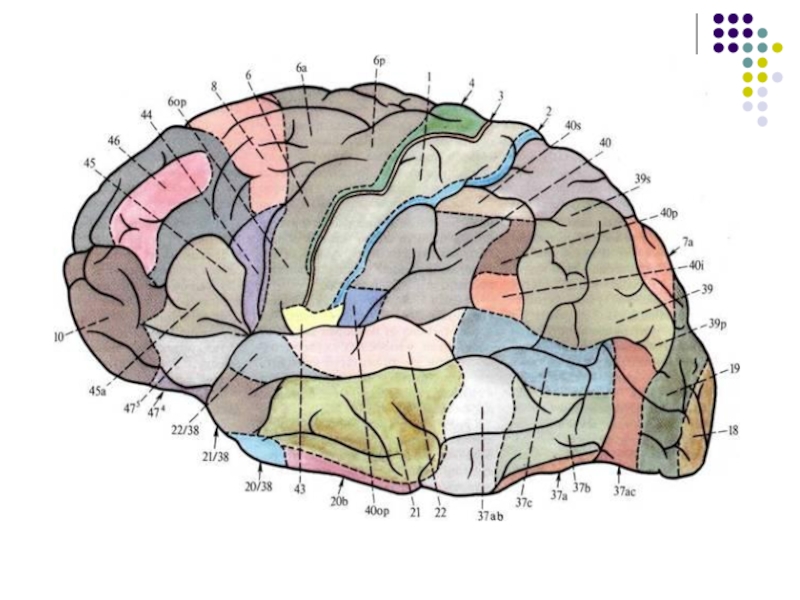 Слайд 31Первичные поля лобных долей мозга – представительство кинетической системы, настроены