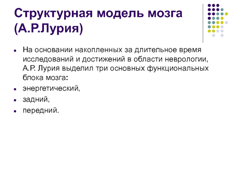 Слайд 16Структурная модель мозга (А.Р.Лурия)