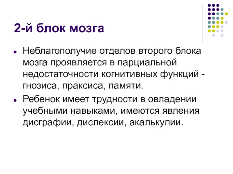 Неблагополучие отделов второго блока мозга проявляется в парциальной