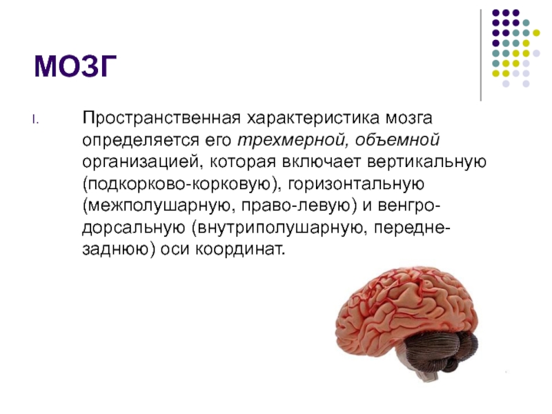 Пространственная характеристика мозга определяется его трехмерной, объемной организацией, которая