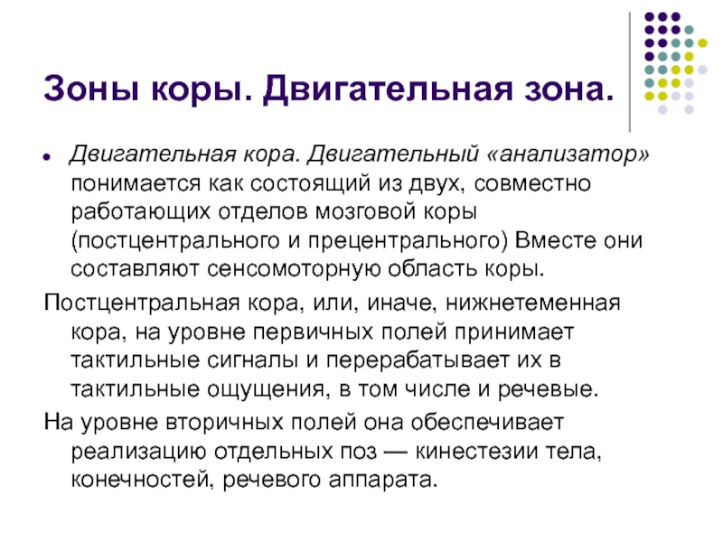 Двигательная кора. Двигательный «анализатор» понимается как состоящий