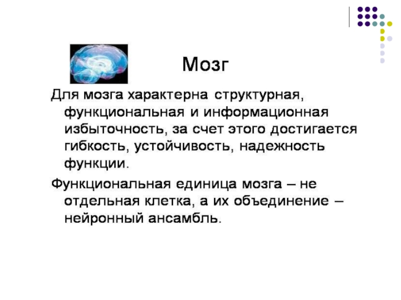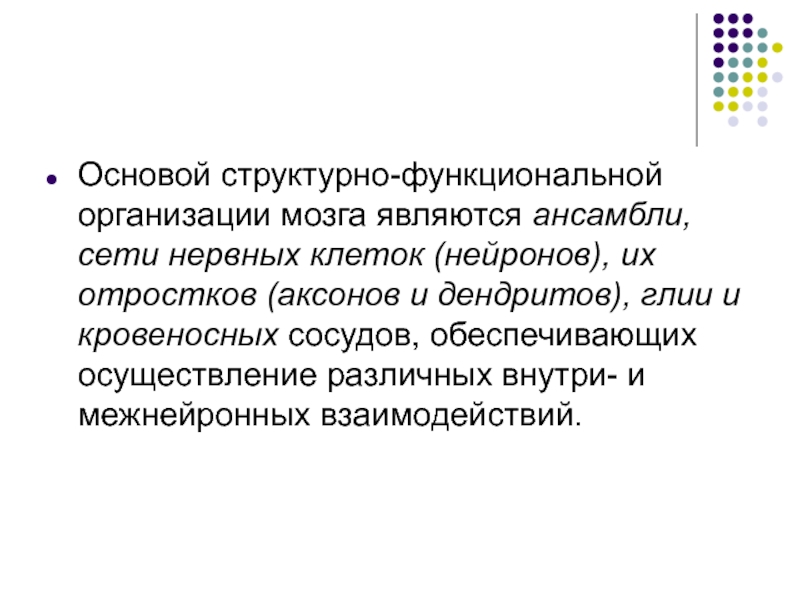 Слайд 7Основой структурно-функциональной организации мозга являются ансамбли, сети нервных клеток (нейронов),