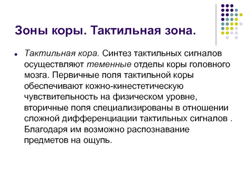 отделы коры головного мозга. Первичные поля тактильной коры обеспечивают кожно-кинестетическую