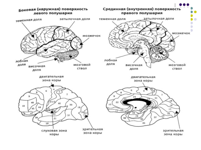 отделов рассматриваются левое и правое полушария, которые анатомически совпадают с