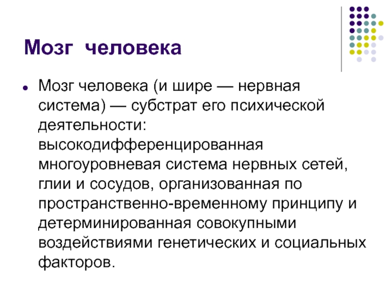 его психической деятельности: высокодифференцированная многоуровневая система нервных сетей, глии и