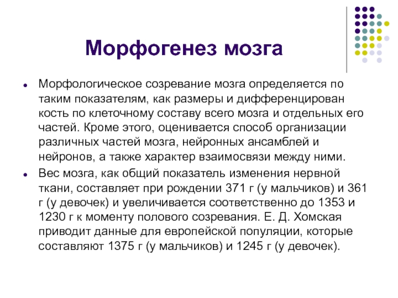 Морфологическое созревание мозга определяется по таким показателям, как размеры