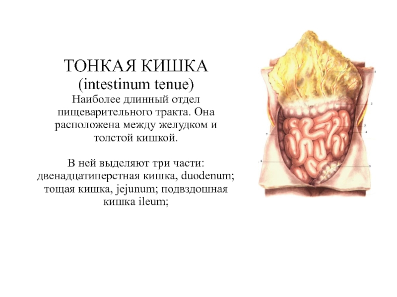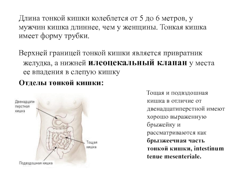 Верхней границей тонкой кишки является привратник желудка, а нижней илеоцекальный клапан у места ее впадения в слепую кишку