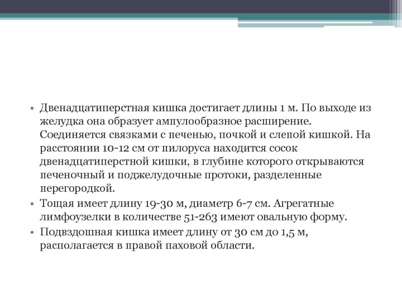 Слайд 15Двенадцатиперстная кишка достигает длины 1 м. По выходе из желудка
