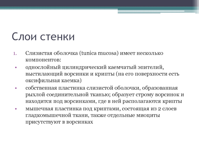 Слизистая оболочка (tunica mucosa) имеет несколько компонентов: