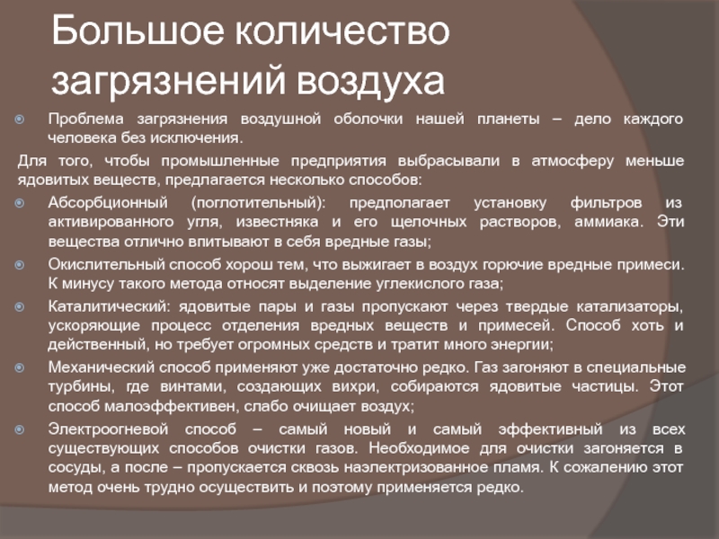 Проблема загрязнения воздушной оболочки нашей планеты –