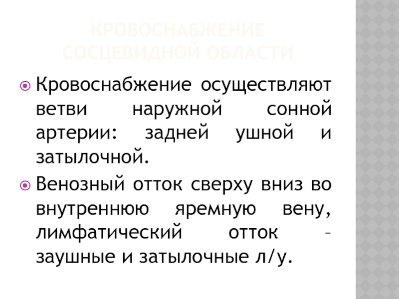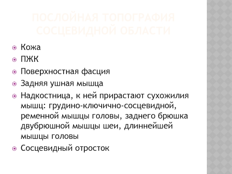 - сосцевидный отросток и начало грудино-ключично-сосцевидной мышцы;