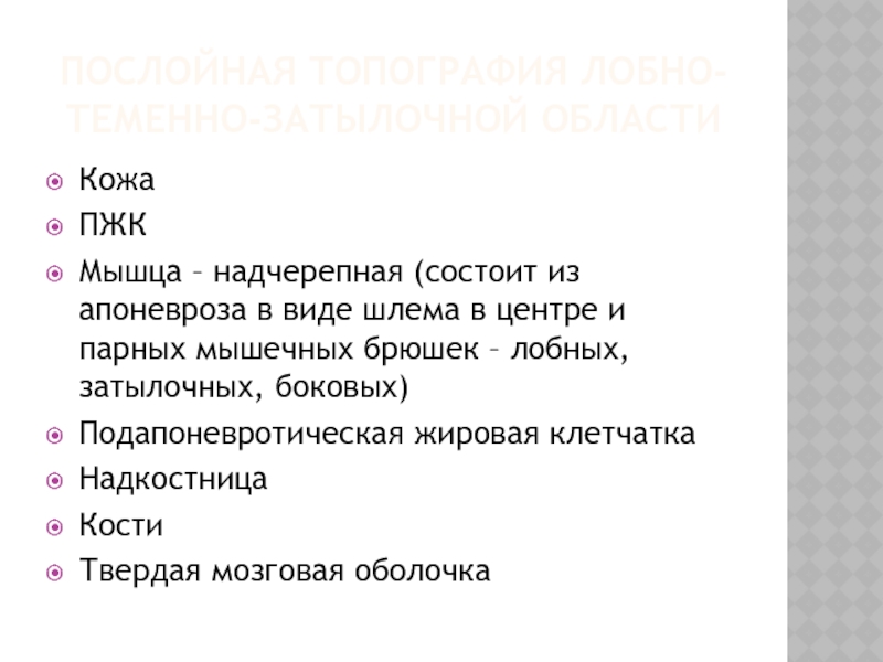 Слайд 5Послойная топография лобно-теменно-затылочной области