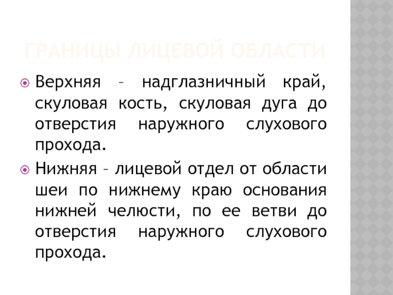 Границы – верхняя: нижний край глазницы, нижняя: нижний край