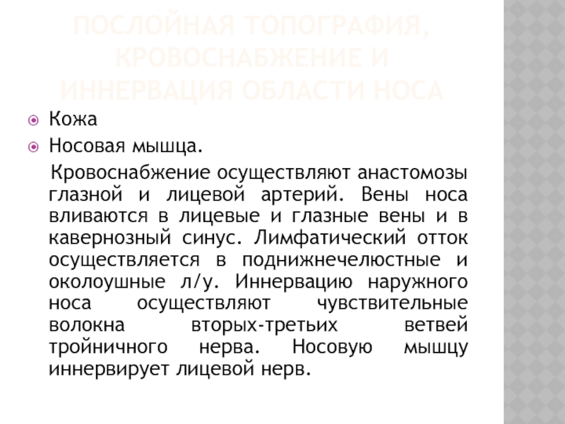 Слайд 23Послойная топография, кровоснабжение и иннервация области носа