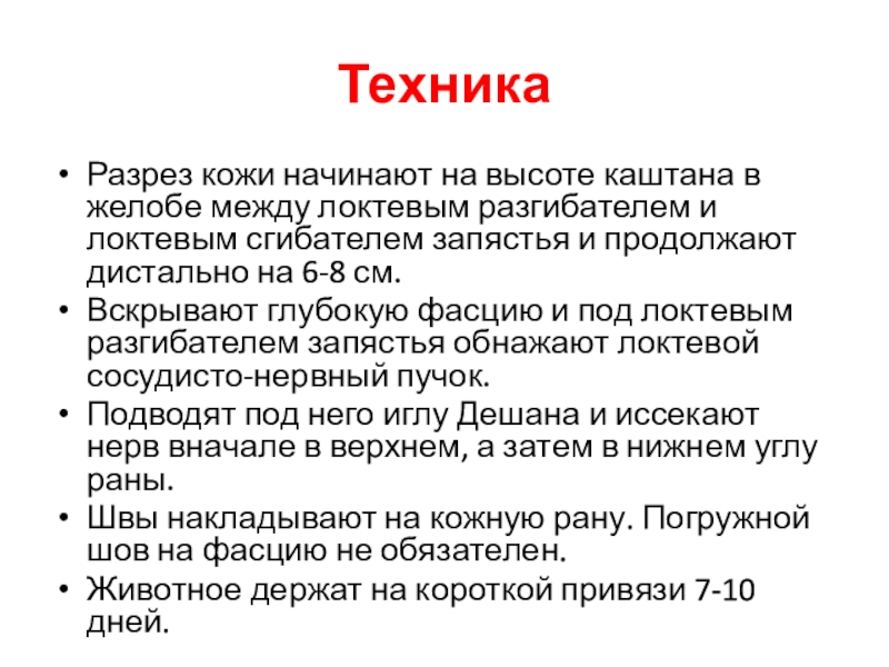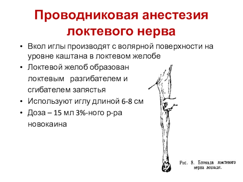 Слайд 78Оперативные доступы к нервам грудной конечности лошади:
