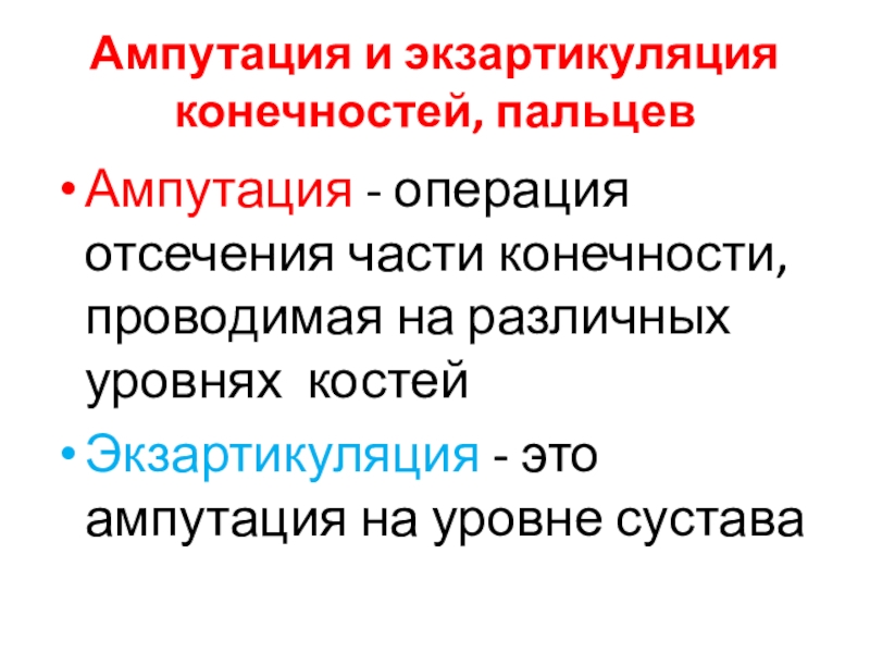 Слайд 63Ампутация и экзартикуляция конечностей, пальцев