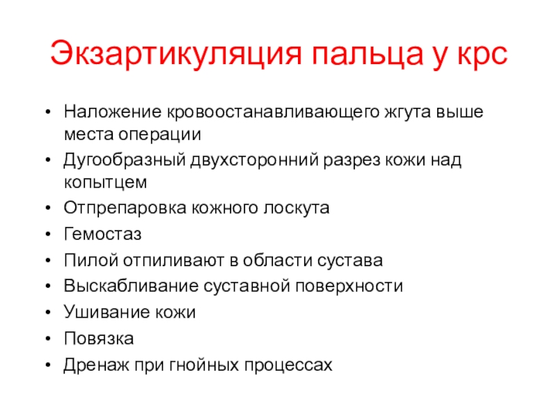 Слайд 73Экзартикуляция второй фаланги у крупного рогатого скота: