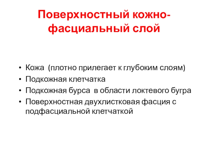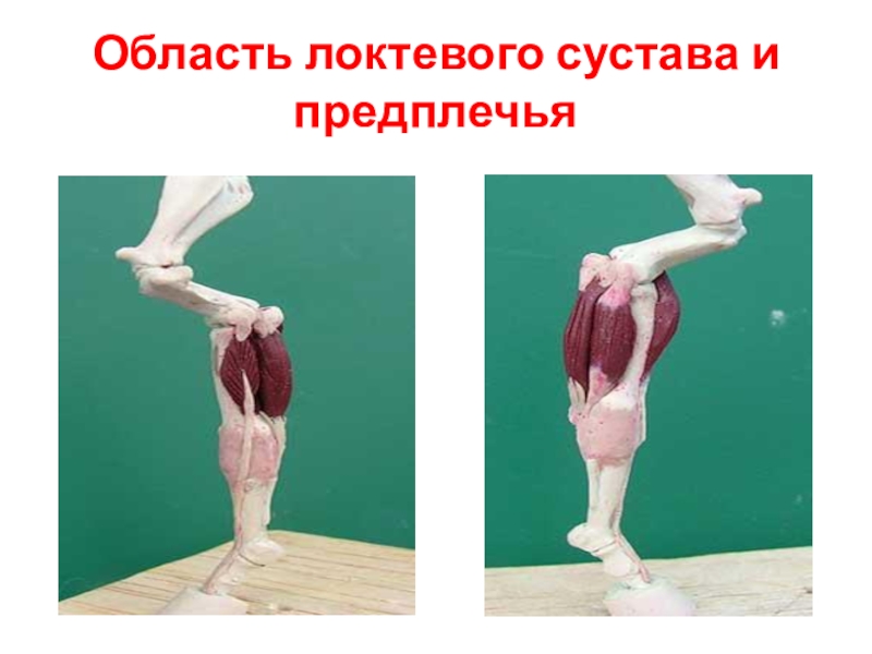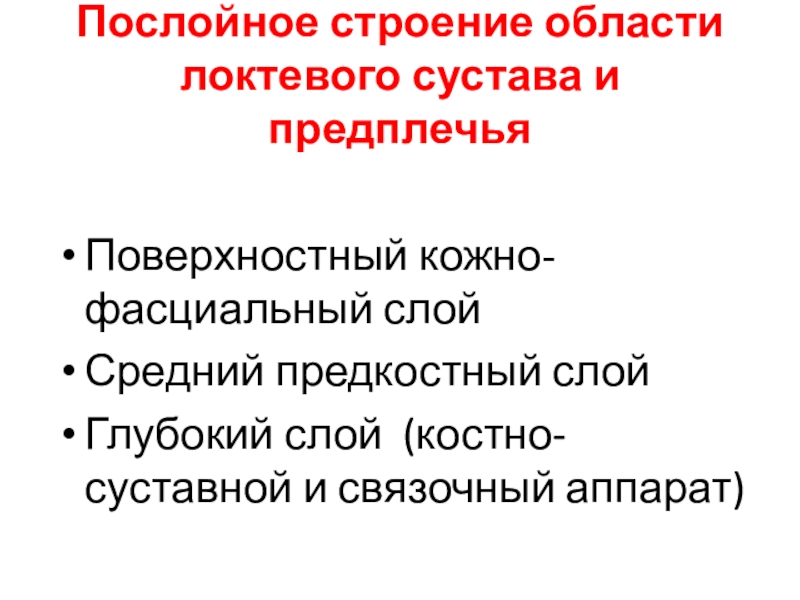 Слайд 12Послойное строение области локтевого сустава и предплечья