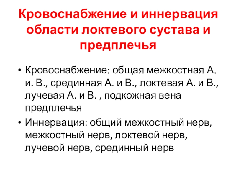 Слайд 20Кровоснабжение и иннервация области локтевого сустава и предплечья