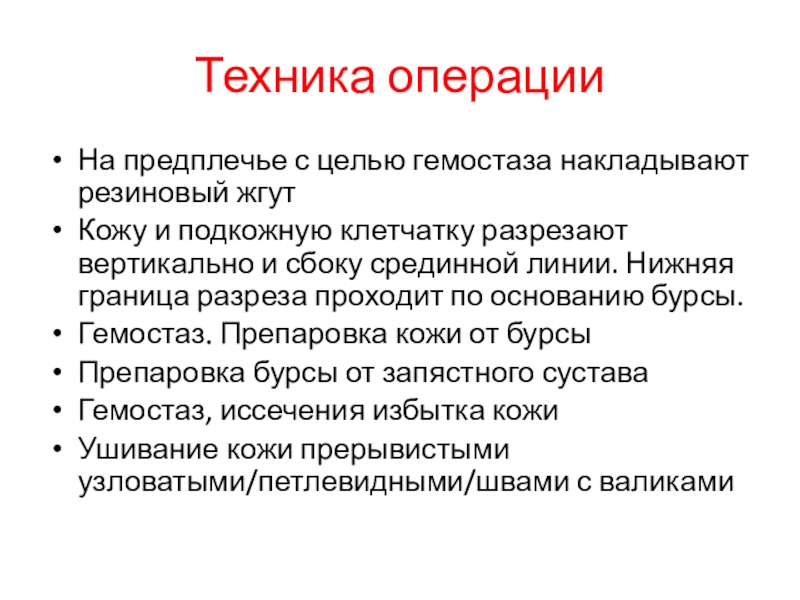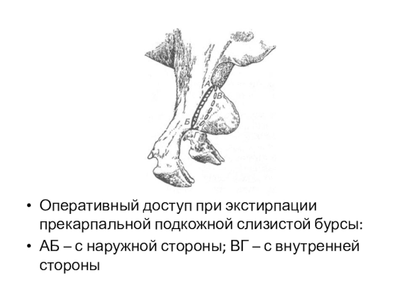 Оперативный доступ при экстирпации прекарпальной подкожной слизистой бурсы: