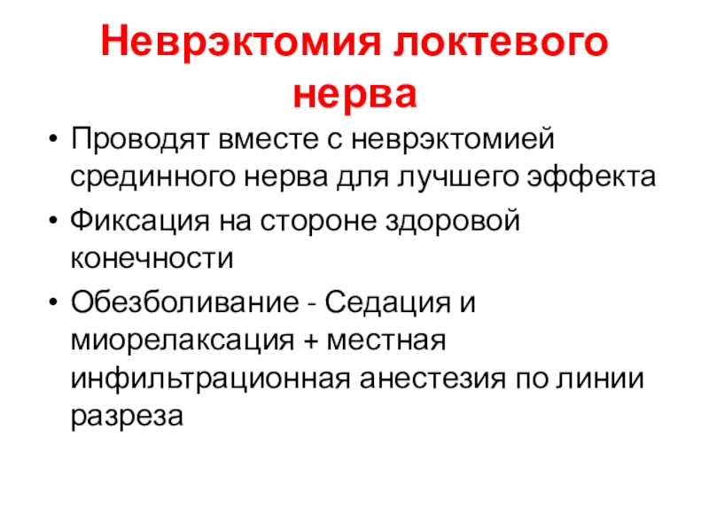 Проводят вместе с неврэктомией срединного нерва для лучшего