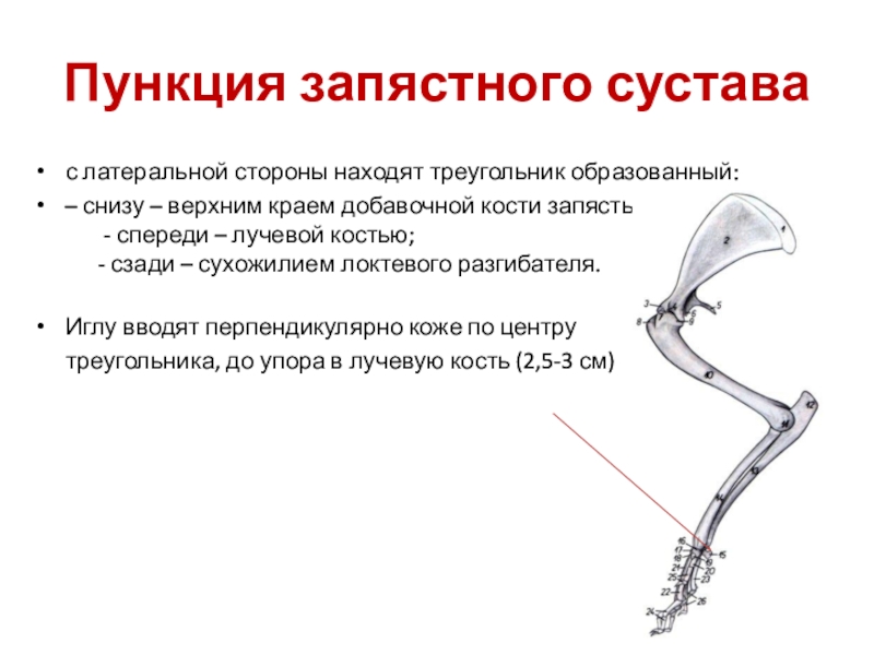 2—3 см ниже локтевого сустава и на 1,5 см кзади