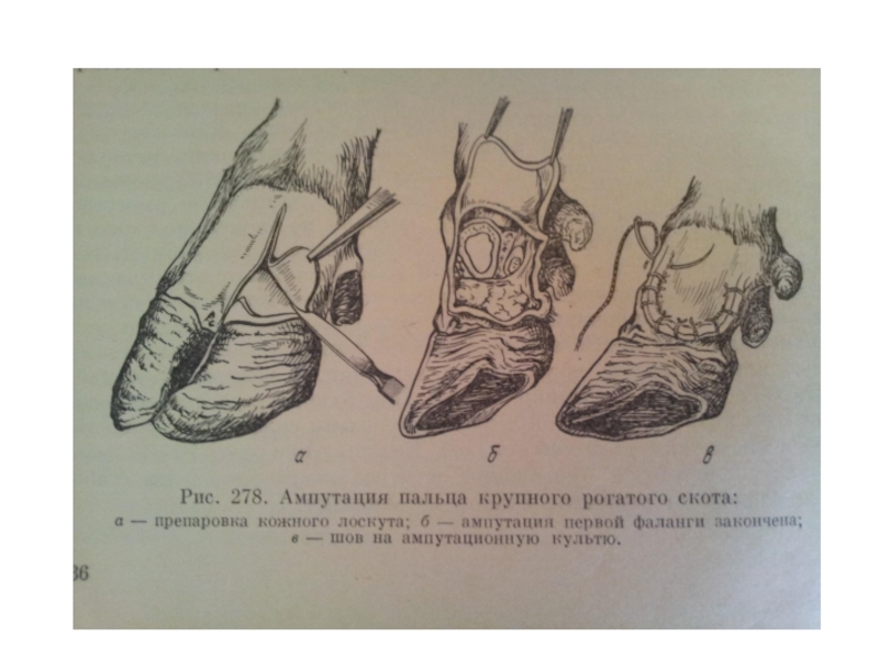 Слайд 62Ампутация и экзартикуляция пальцев у парнокопытных животных