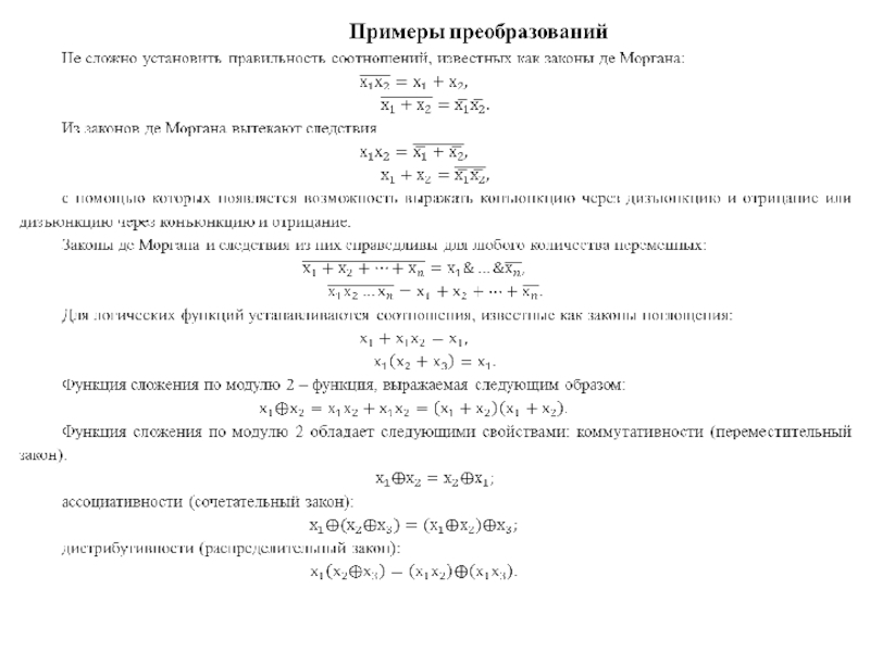 в алгебре логики.Примеры преобразований.
