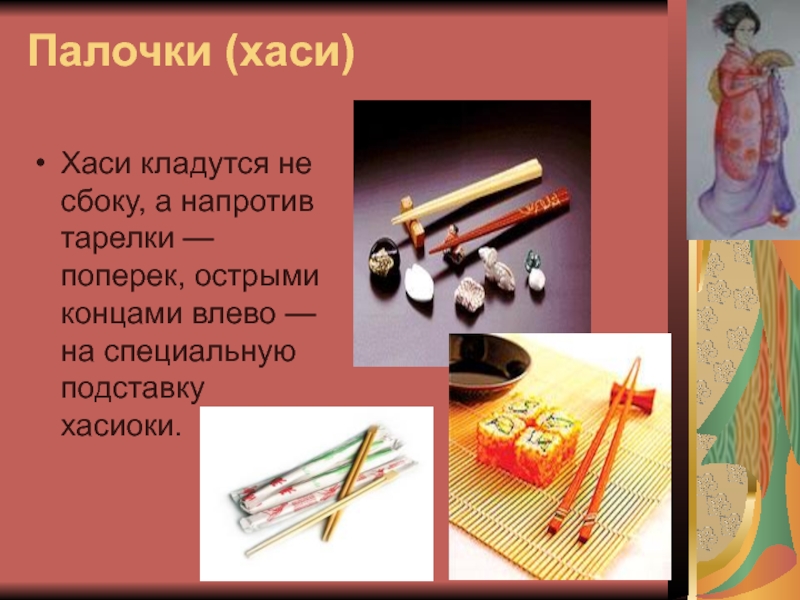 Хаси кладутся не сбоку, а напротив тарелки — поперек,