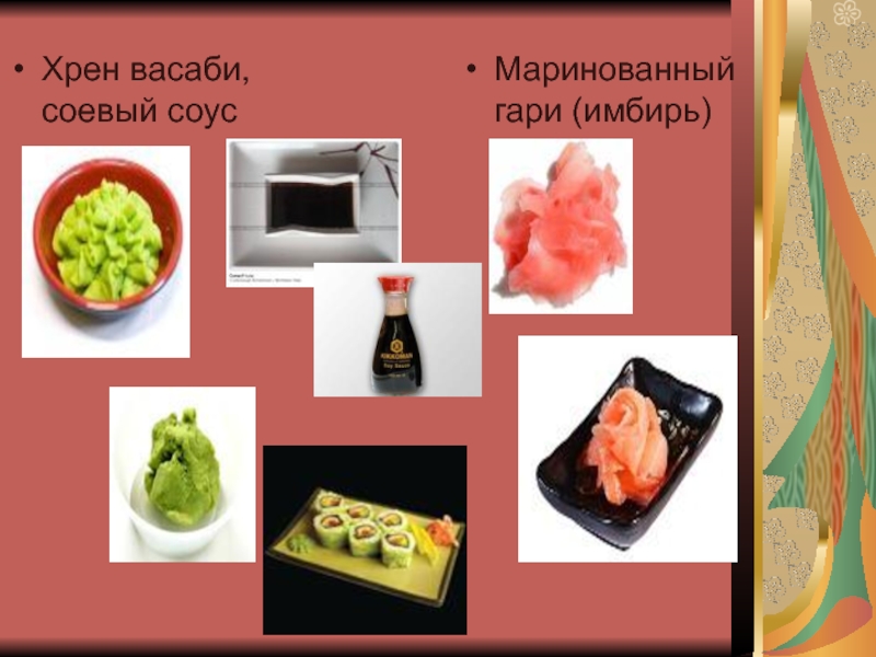 Слайд 7«суши» («суси») -небольшие рулетики из нори (высушенных морских водорослей семейства