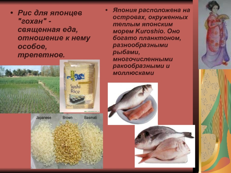 Слайд 5Рис для японцев "гохан" - священная еда, отношение к нему