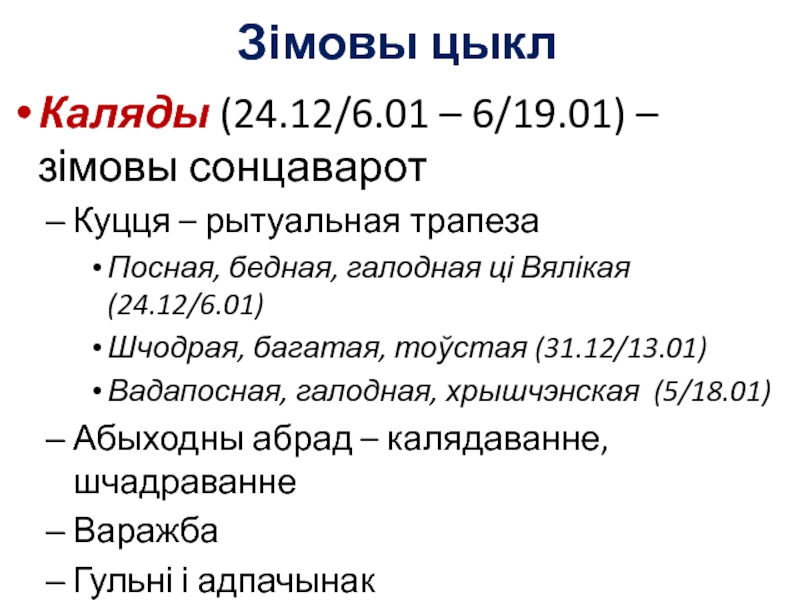 Каляды (24.12/6.01 – 6/19.01) – зімовы сонцаварот