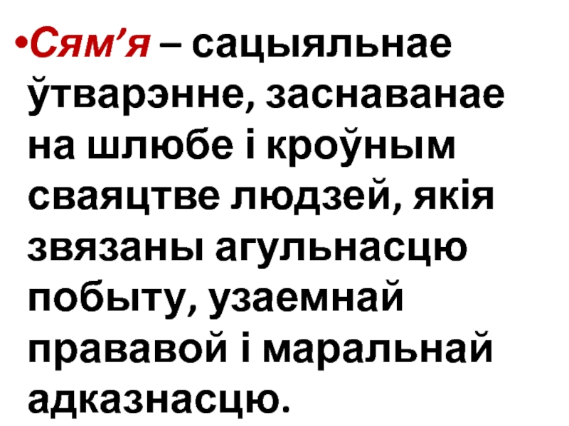 Слайд 3Сям’я – сацыяльнае ўтварэнне, заснаванае на шлюбе і кроўным сваяцтве