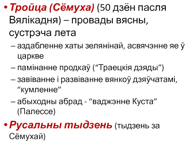 Слайд 30Тройца (Сёмуха) (50 дзён пасля Вялікадня) – провады вясны, сустрэча