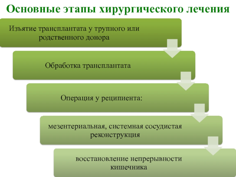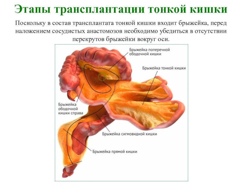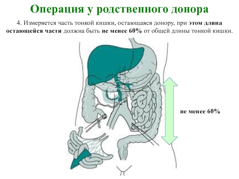 Забор у живого (родственного) донора фрагмента тонкой кишки (схема):