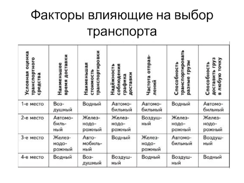 Факторы влияющие на выбор транспорта