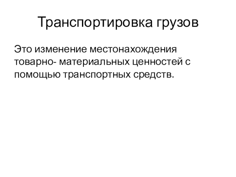 Транспортировка грузовЭто изменение местонахождения товарно- материальных ценностей с помощью транспортных средств.