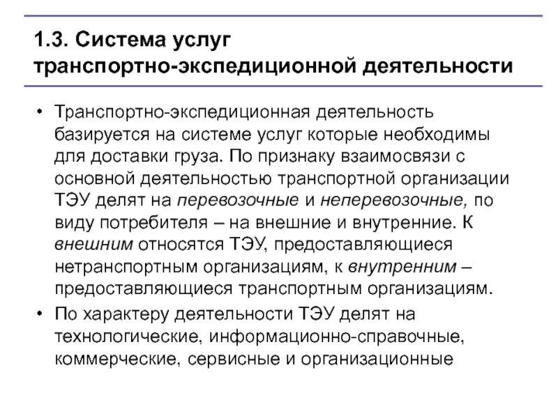 Транспортно-экспедиционная деятельность базируется на системе услуг