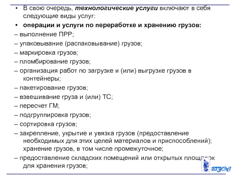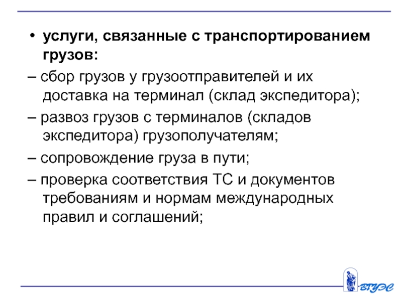 Слайд 16услуги, связанные с транспортированием грузов: