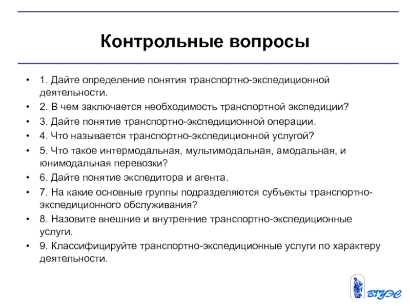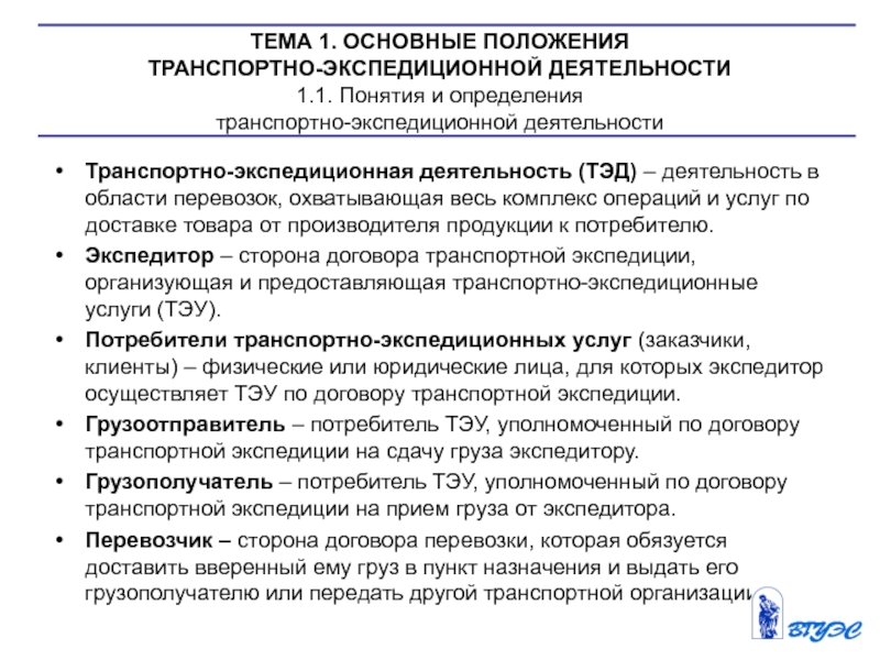 1. Дайте определение понятия транспортно-экспедиционной деятельности.